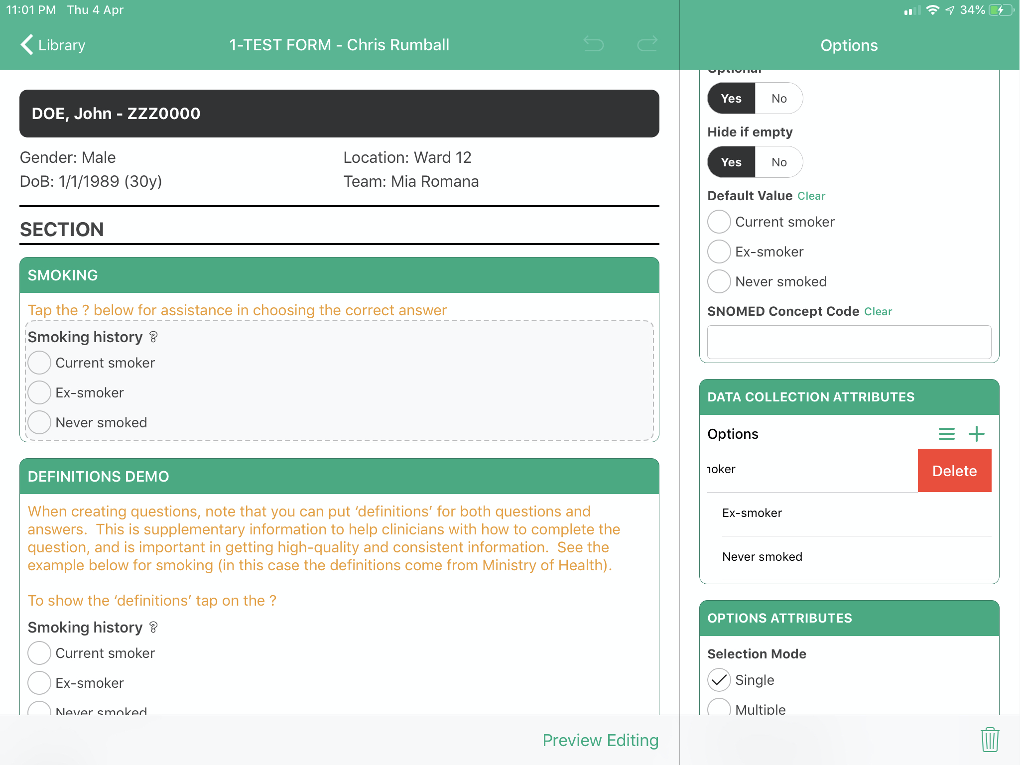 To remove an option that is not required, just swipe from right to left - this will show you a red delete button.