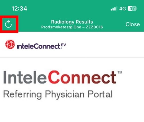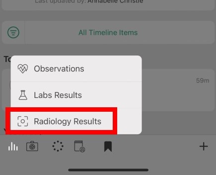 - Then Tap on Radiology Results to launch Intelerad in patient context