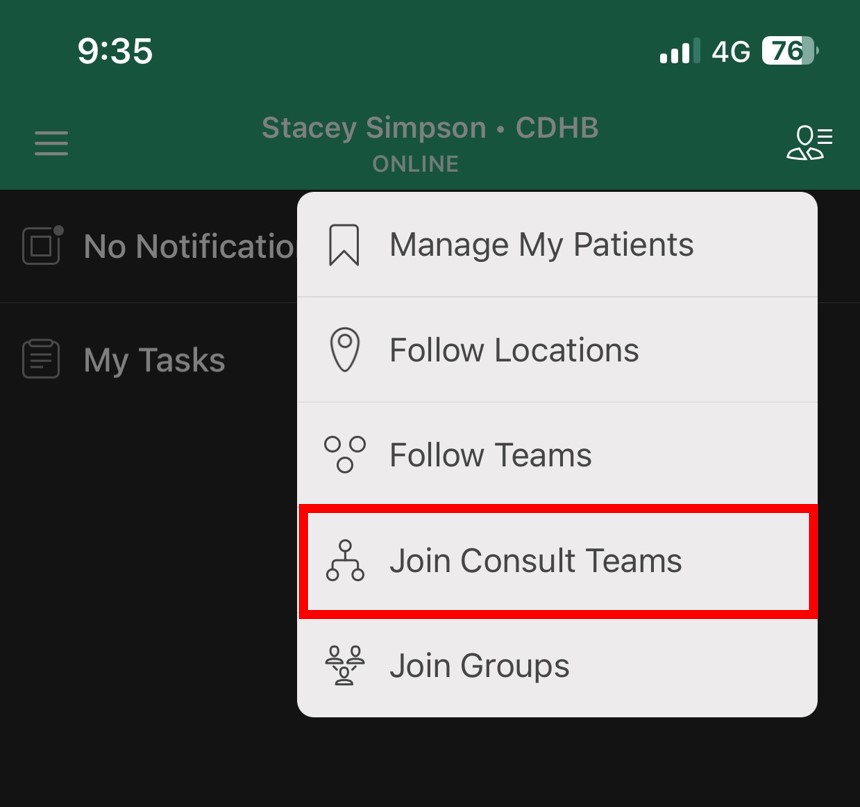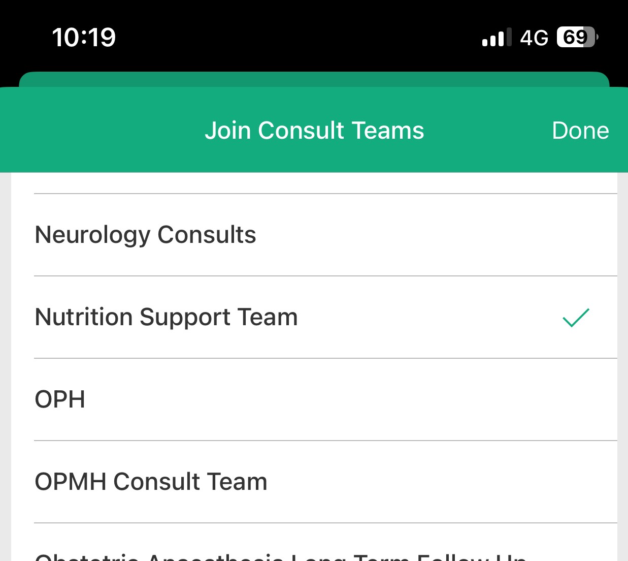 - Tap to select the Consult Team you wish to join, then Tap 'Done'