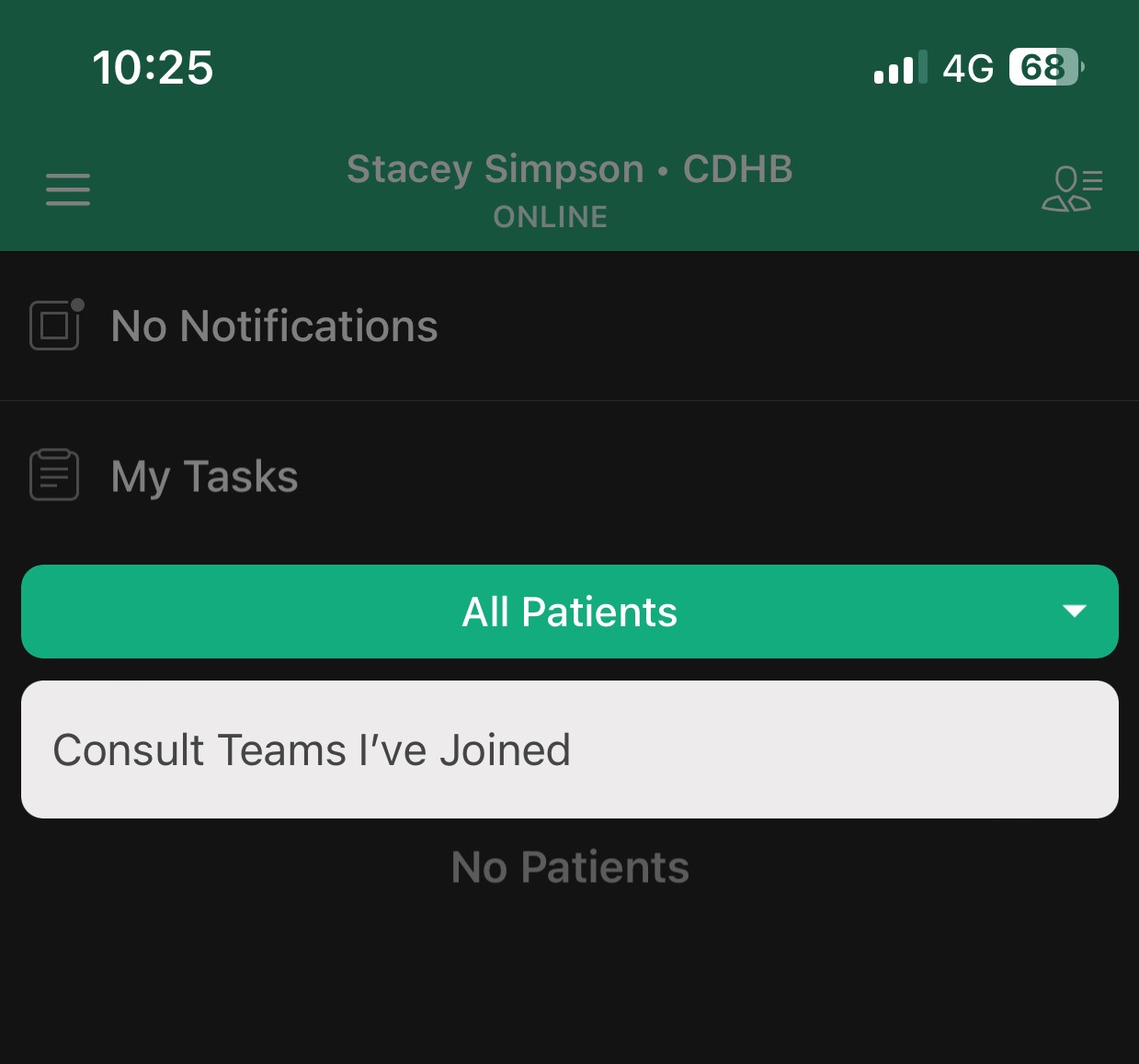 - Tap on Patient View Filter and select 'Consult Team I've Joined'