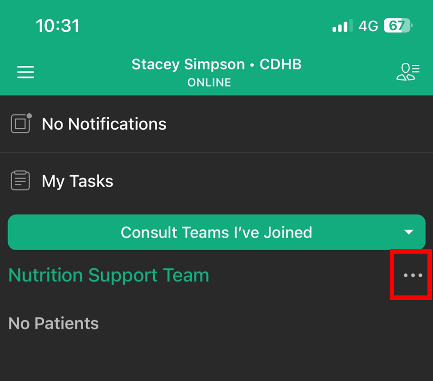- Tap on the three dot icon to the right of the Consult Team name to add or remove patients