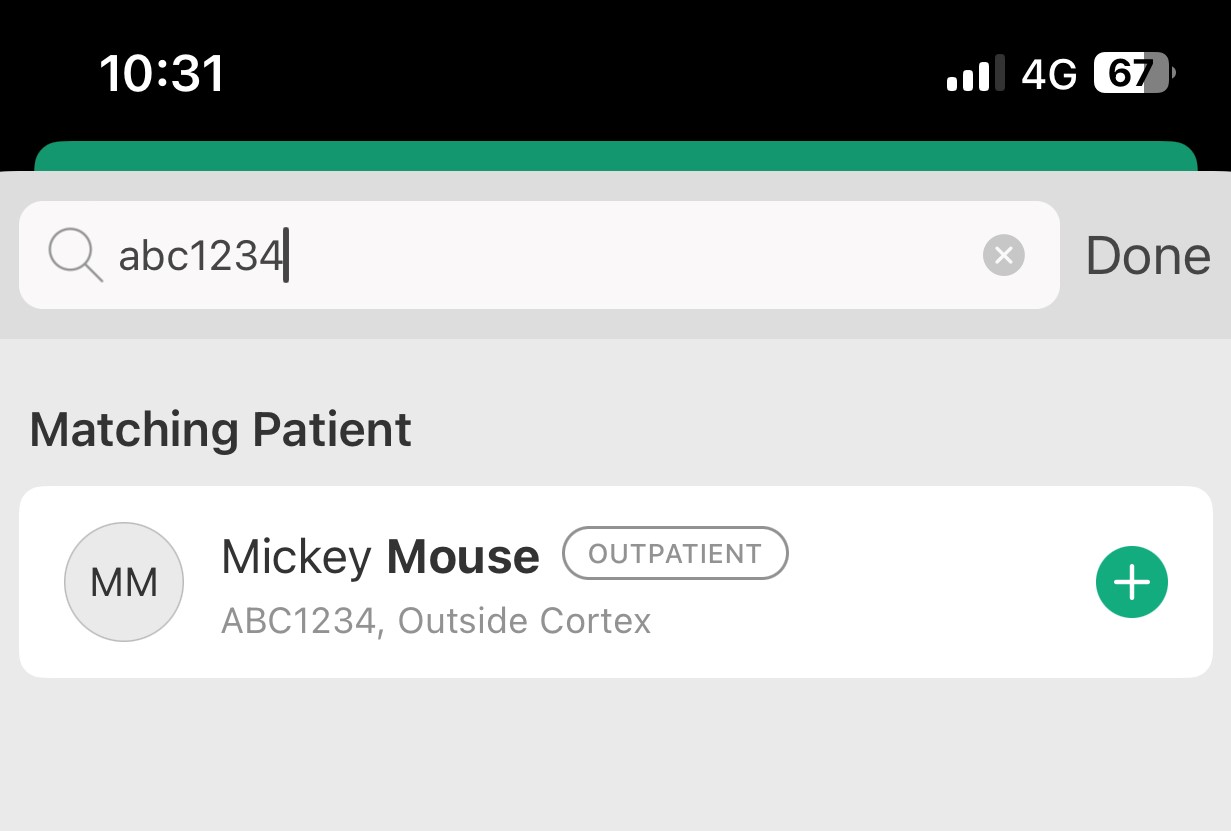- Tap on the x icon beside the patient's name, Tap 'Done'